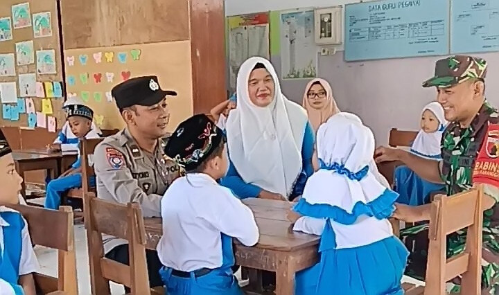 Potret kehadiran personil TNI-POLRI, bersama tiga pilar itu salah satunya terlihat di imunisasi yang dilaksanakan Puskesmas Watulimo di empat titik yakni SDN 2 Karanggandu, TK Kartika Sari, Paud Hidayaturrohman dan Posyandu Dusun Gandu, Selasa (16/1).