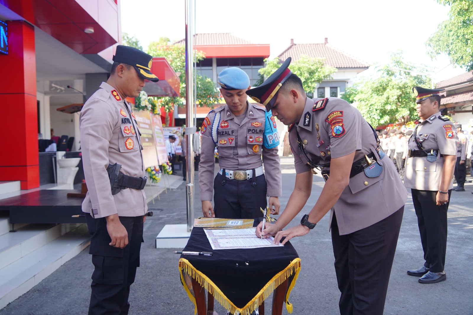 Serah terima jabatan (sertijab) Kasatlantas dan Kasatreskrim dipimpin langsung oleh Kapolres Ponorogo AKBP Anton Prasetyo, di halaman Mapolres Ponorogo.
